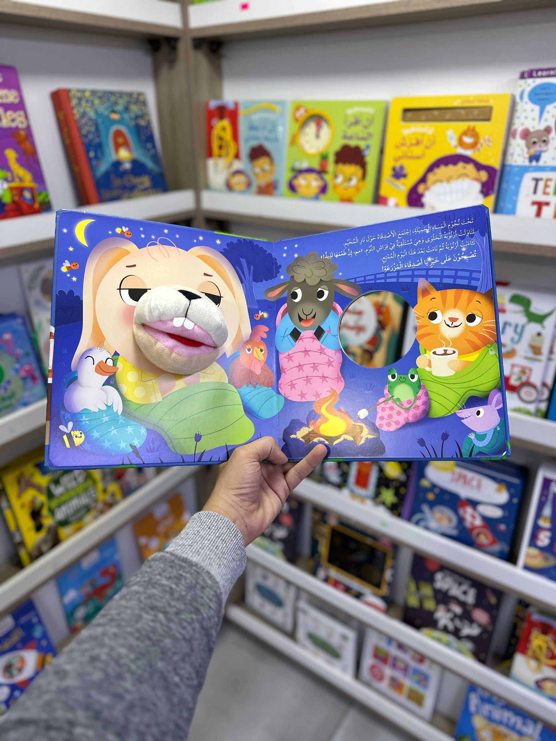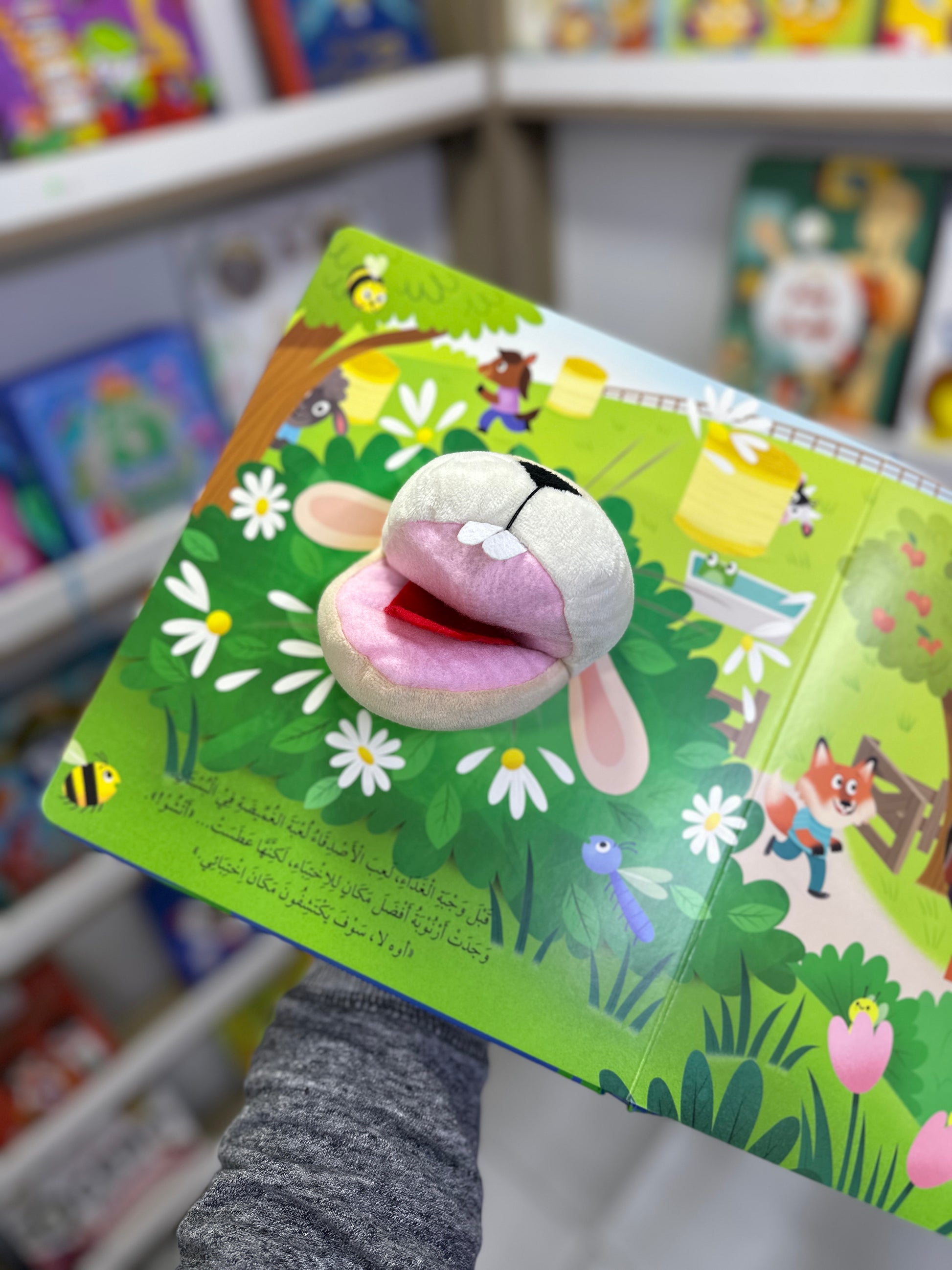 كتاب يد الدمية ، كتاب قصصي جميل صفحات كبيرة و رسوم جذابة مع  دمية يمكن تحريكها بوضع اليد خلف الكتاب ، ليتفاعل طفلكم مع شخصية الكتاب بكل حب