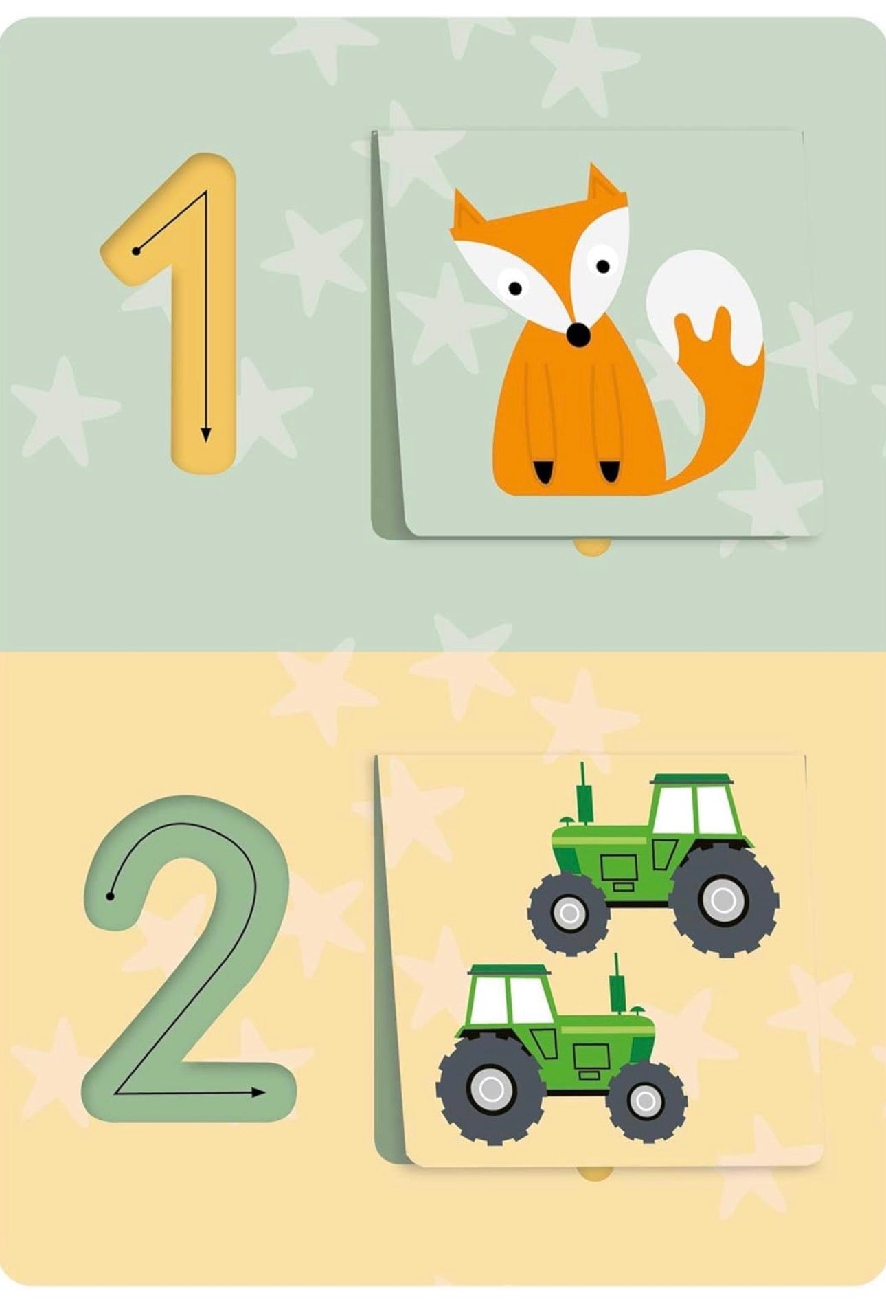 Learn to count and recognize numbers with these interactive, double-sided flashcards. Trace the numbers and lift the flaps for a fun learning experience that can be practiced again and again.