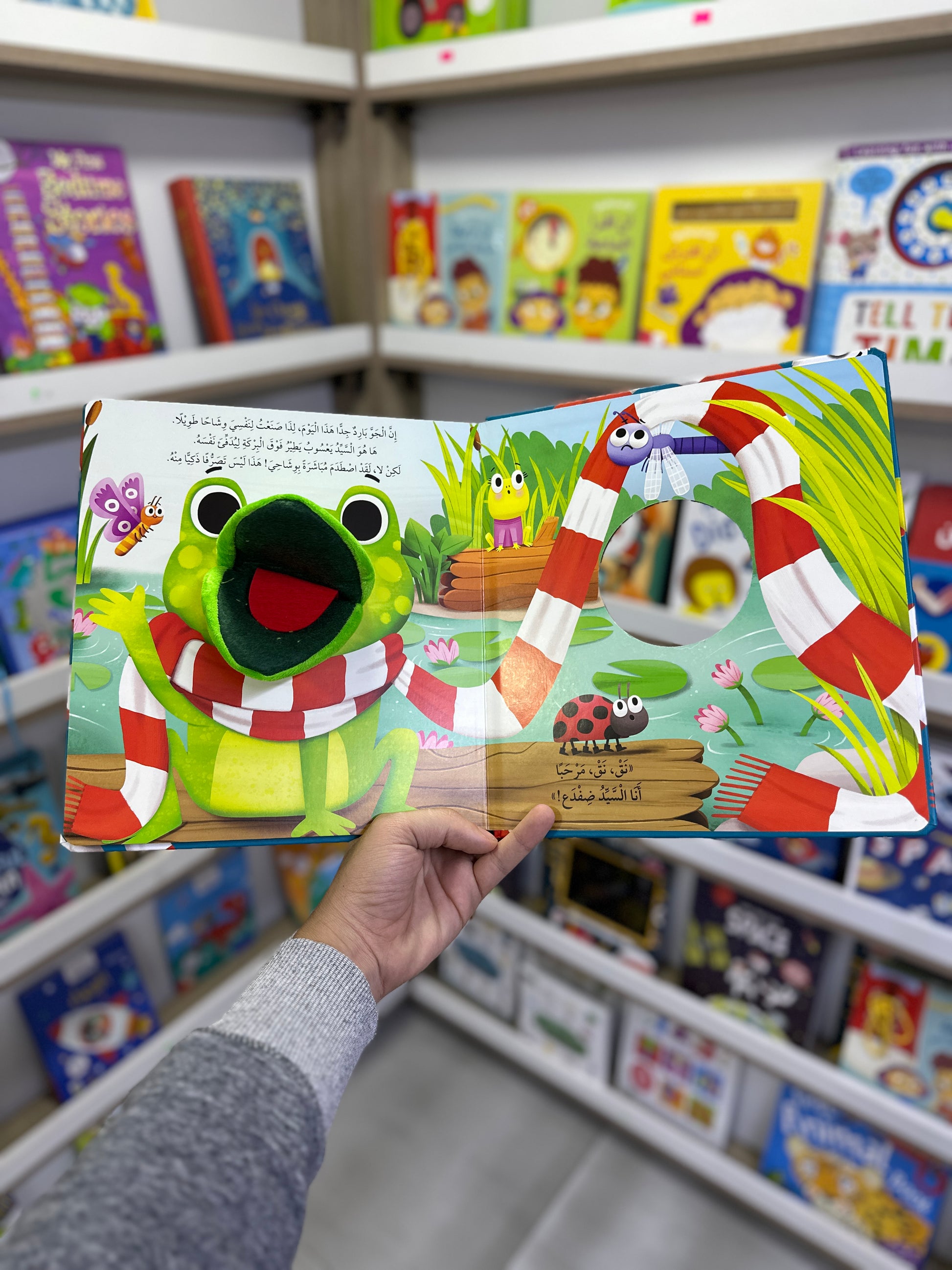 كتاب يد الدمية ، كتاب قصصي جميل صفحات كبيرة و رسوم جذابة مع دمية يمكن تحريكها بوضع اليد خلف الكتاب ، ليتفاعل طفلكم مع شخصية الكتاب بكل حب