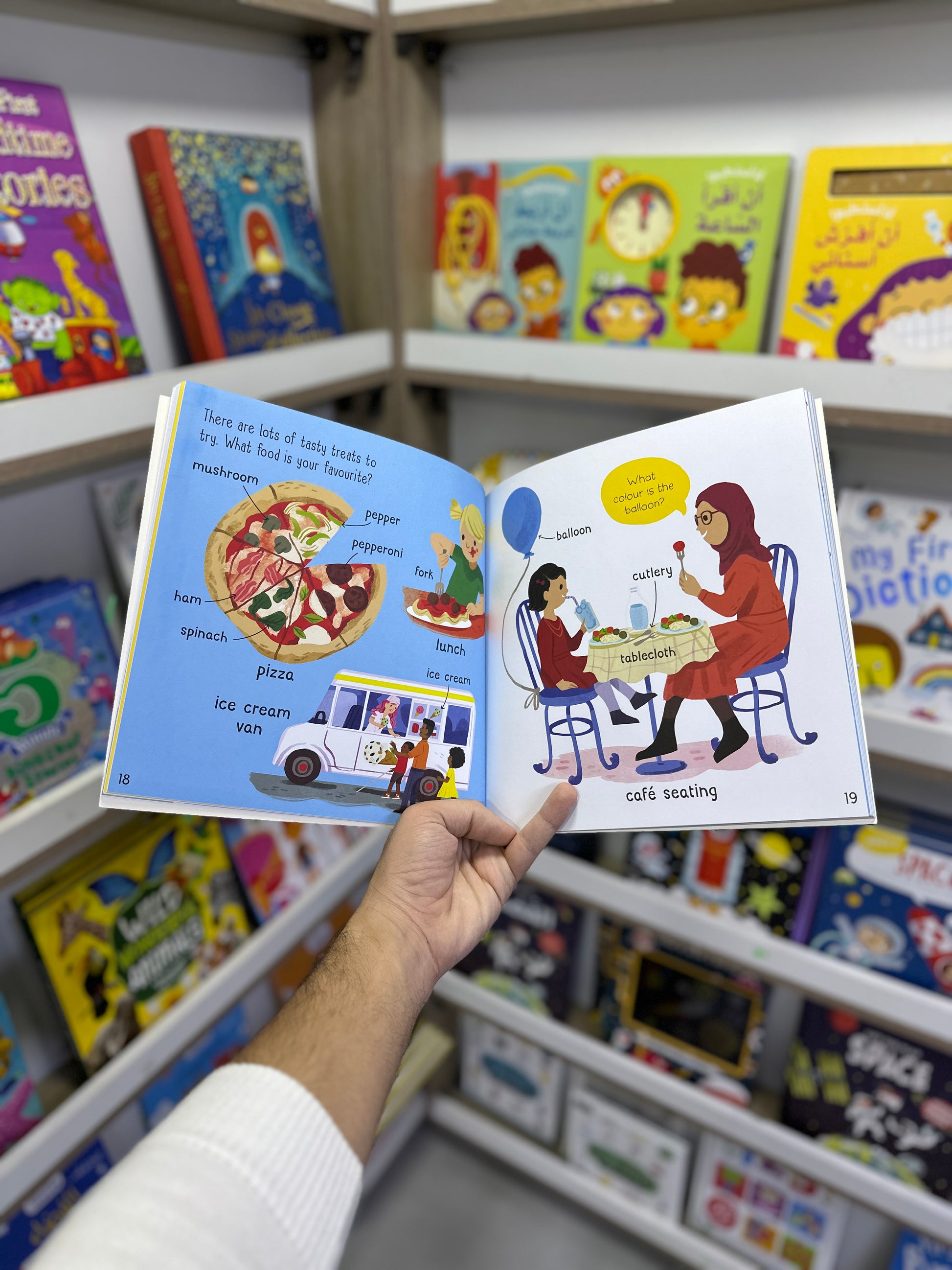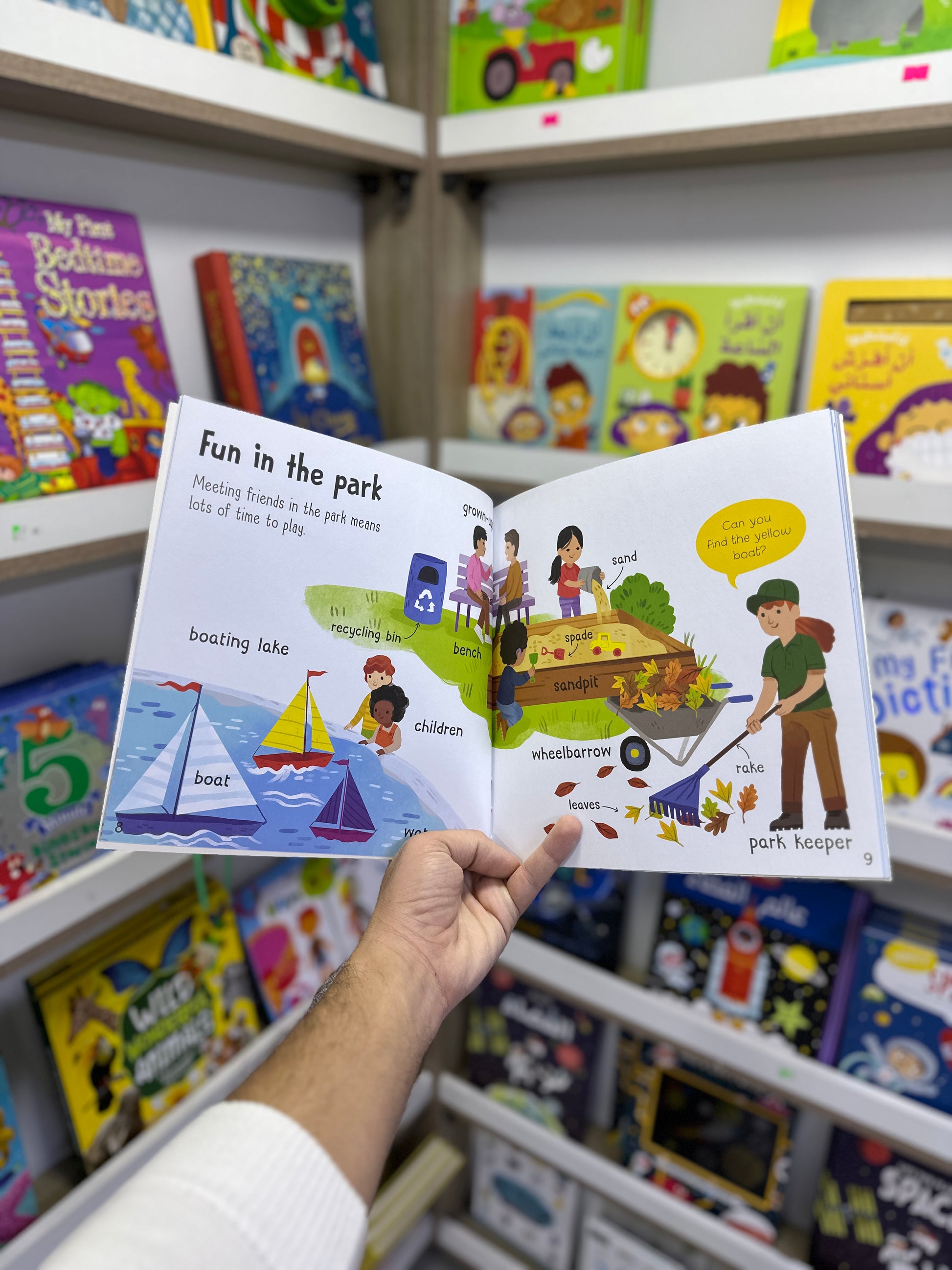 - At School: يساعد الطفل على التعرّف على بيئة المدرسة من خلال كلمات وصور مرتبطة بالصف والأدوات والأنشطة المدرسية.
